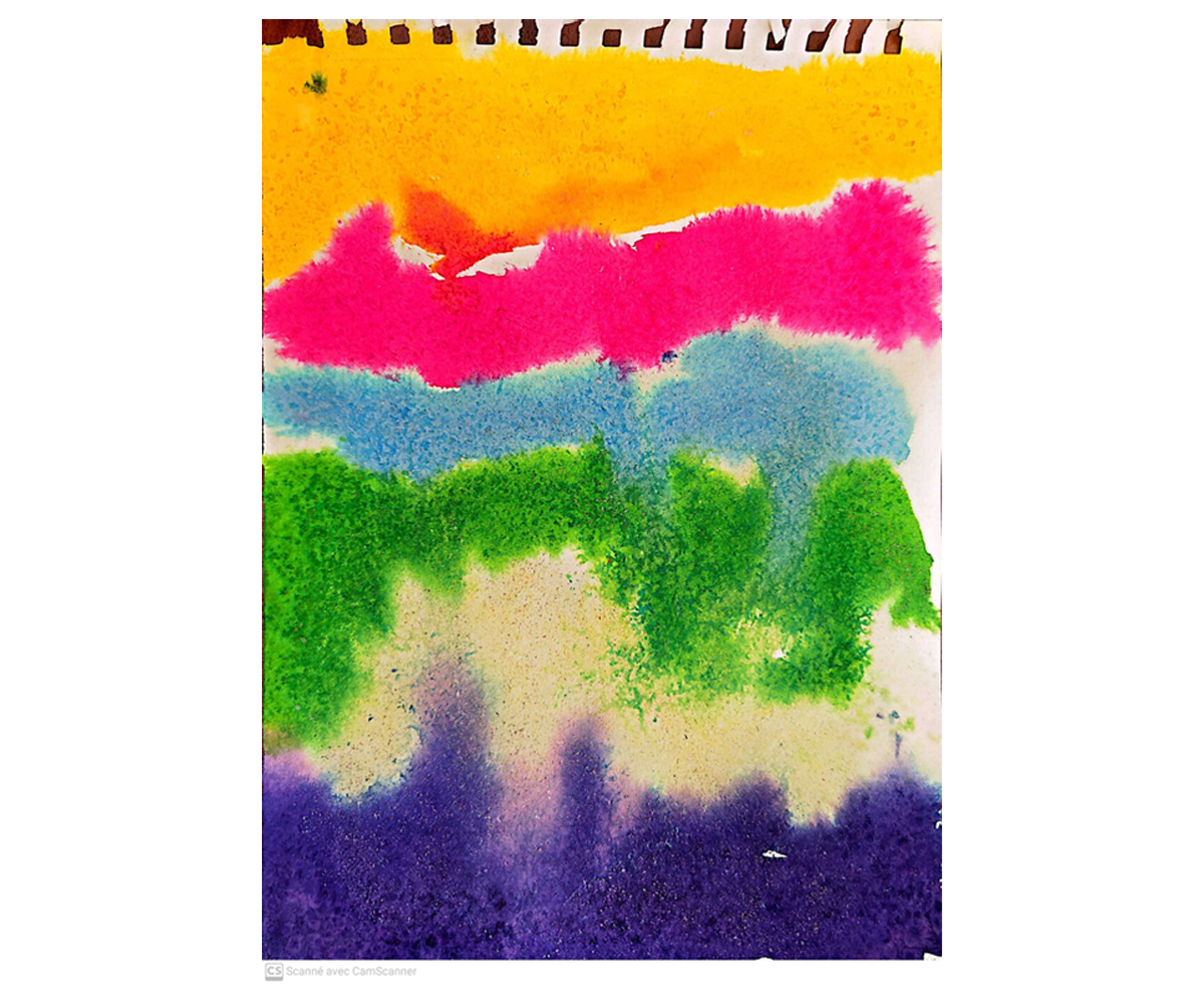 Cette aquarelle abstraite à été scannée avec une application de smartphone, et faite par Milo, 5 ans.